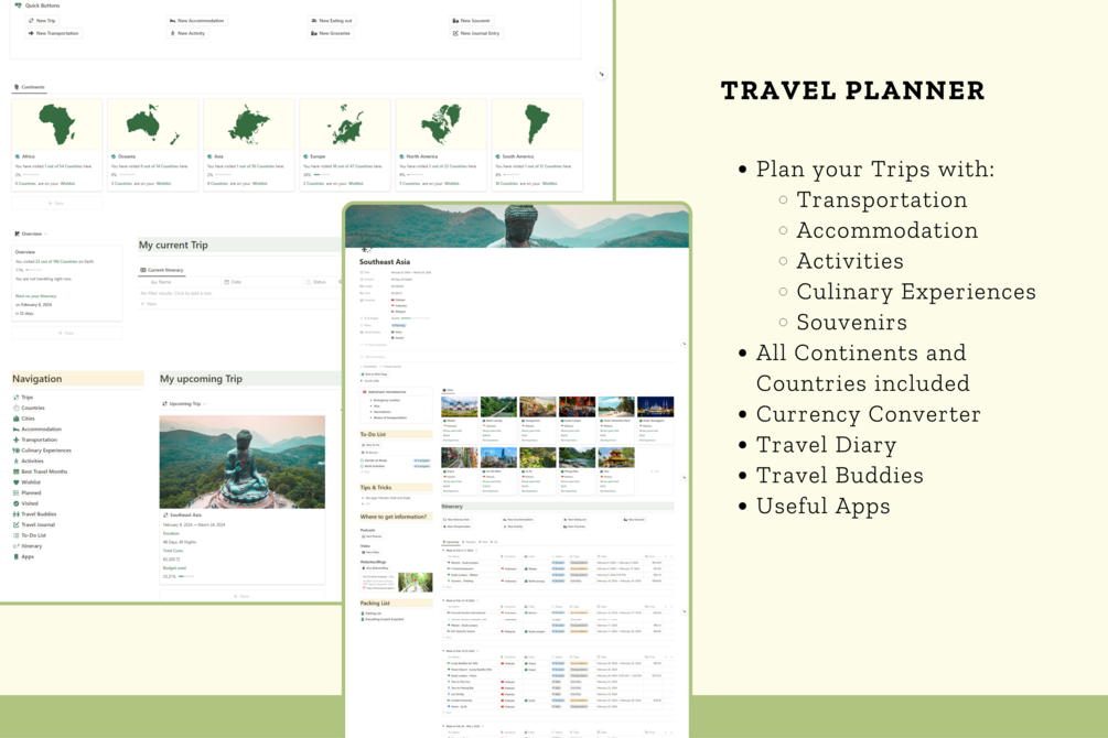 ๐ฉ๐ฎ๐ฐ๐ฎ๐๐ถ๐ผ๐ป ๐ฃ๐น๐ฎ๐ป๐ป๐ถ๐ป๐ด: Craft dream vacations. Organize itineraries, budgets, accommodations, and packing lists.