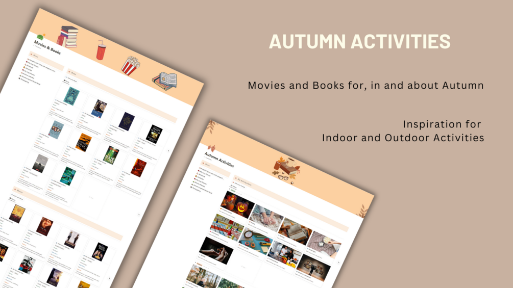 • Fall Activities: dive into the spirit of autumn with our comprehensive "Fall Activities Guide" Notion page, curated to make the most of this delightful season. Whether you prefer the crisp outdoor air or the cozy comforts of indoor settings, we have you covered with a diverse range of activities. It also includes DIY projects.