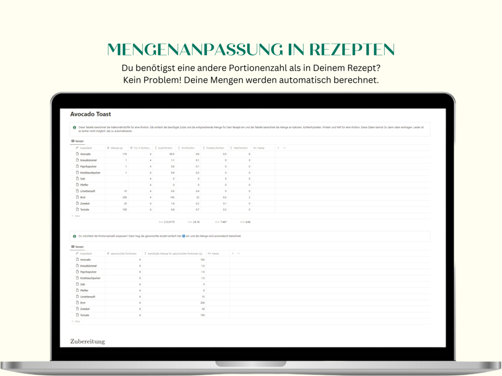 ✨ Nährwertangaben leicht gemacht: Kein Rätselraten mehr bei den Nährwertangaben. Die Zutatendatenbank ist nahtlos mit deinen Rezepten verbunden und liefert dir alle Details zu Kalorien und Makronährstoffen.