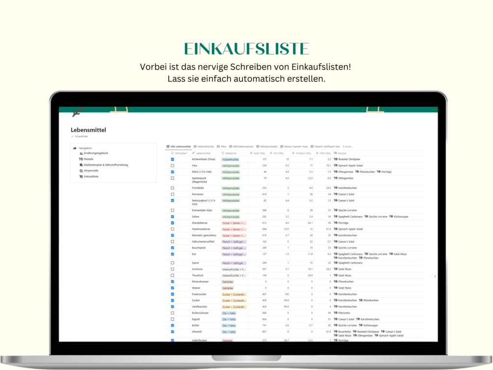 Mit dem mega praktischen Notion Food Diary hast du alle Tools, um deine Ernährungsziele zu erreichen: