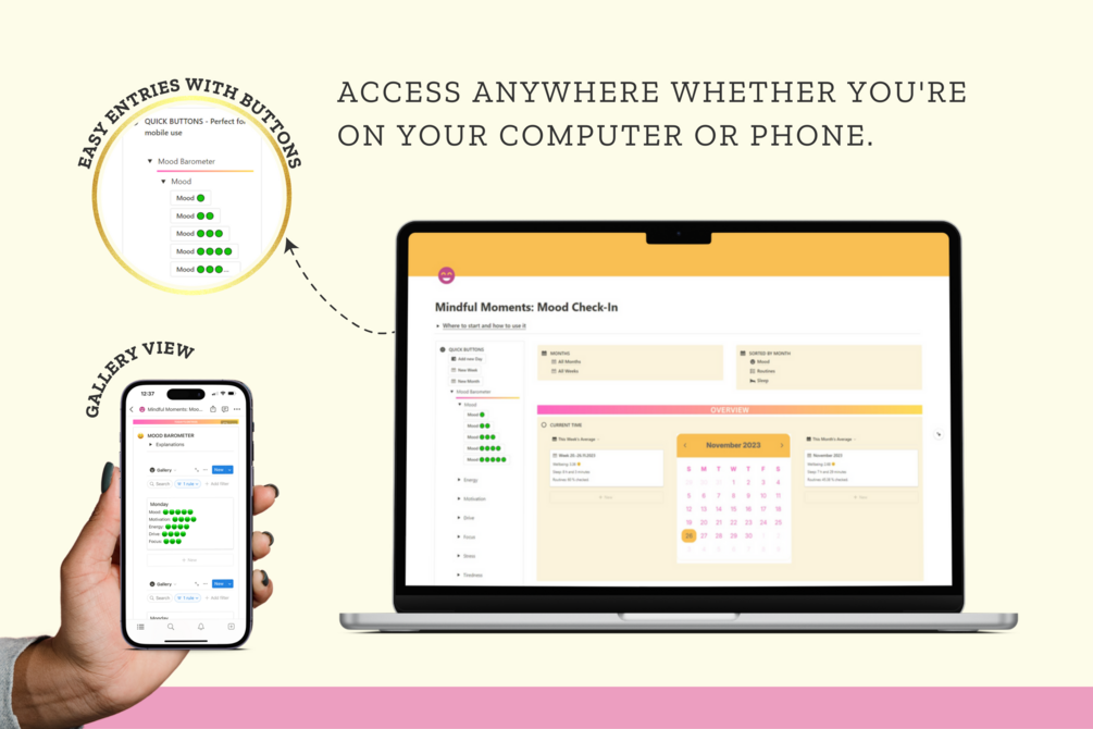 • Optimized for Mobile Use: Access your Mindful Moments template seamlessly on the go. With a mobile-optimized design, you can easily update and review your information from your smartphone or tablet. Stay connected to your well-being wherever you are, whenever you need it.