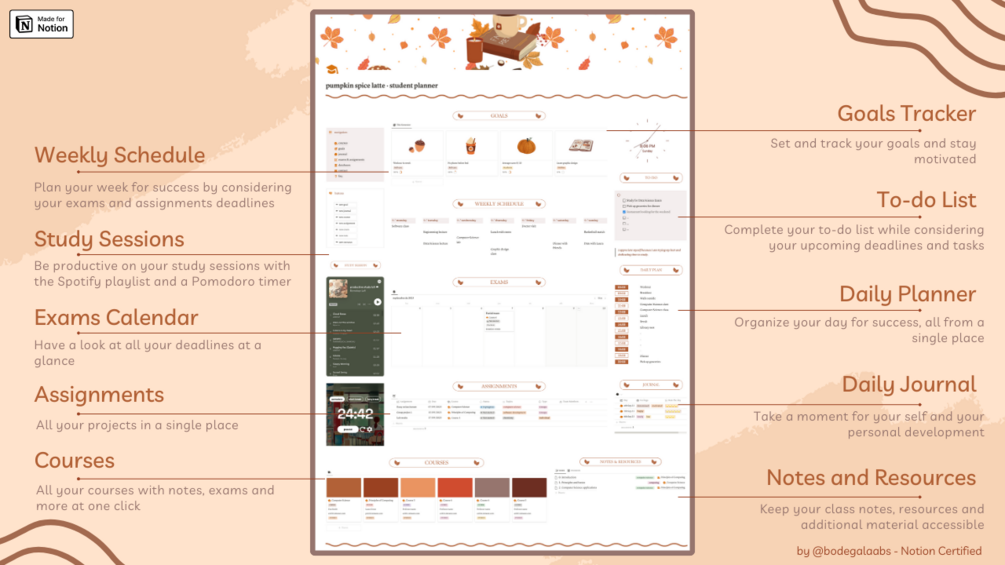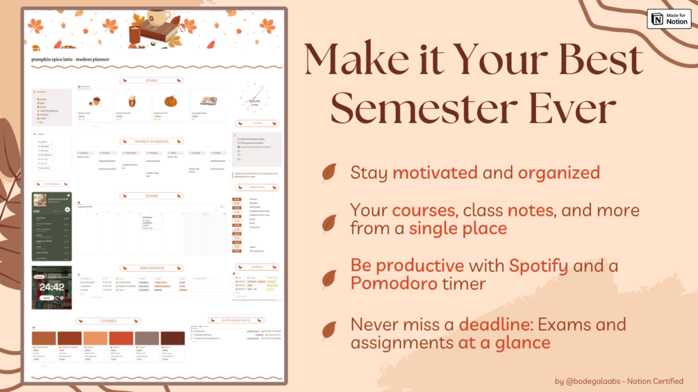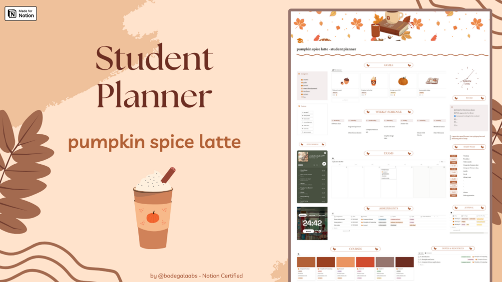 Pumpkin spice latte 路 Student Planner -> an all-in-one notion template to stay organized and motivated throughout the semester